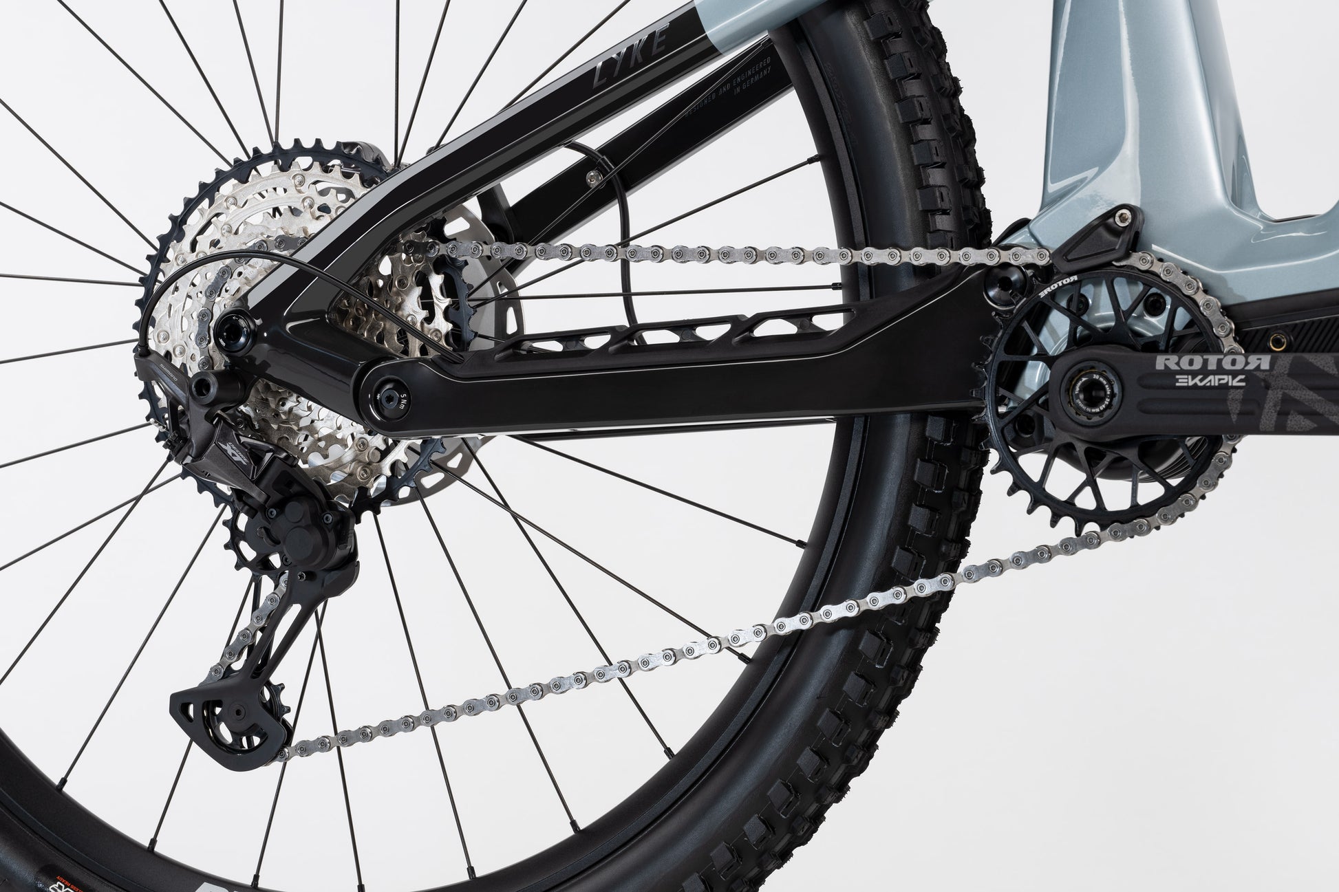The Freedom of Light. Das LYKE CF 11 steht für dieses Motto wie kein zweites eMTB in unserem Line-up. Ein ultraleichtes und zugleich wendiges eFully, mit dem anspruchsvolle Trailrider ihren perfekten Begleiter finden – auf rasanten Uphill und noch rasanteren Downhills. Der sportliche Carbonrahmen mit geschlossenem Unterrohr sowie der kompakt im Sitzrohr platzierte Fazua Ride 60 Motor und der hocheffiziente, herausnehmbare 480 Wh Akku sparen überflüssige Kilos. Hochwertige Shimano Schalt- und Bremskomponenten, Fox Federelemente mit 140 mm Travel sowie die spezifisch entwickelte Kinematik sorgen wiederum für optimale ePerformance bergauf und bergab. Und mit den DT Swiss Laufrädern in 29″ und den grobstolligen Maxxis Reifen rollst du auch im roughen Terrain wie ein Weltmeister. Steig auf das neue LYKE CF 11 – und erlebe grenzenlose Light eMTB Leichtigkeit auf jedem Trail.
